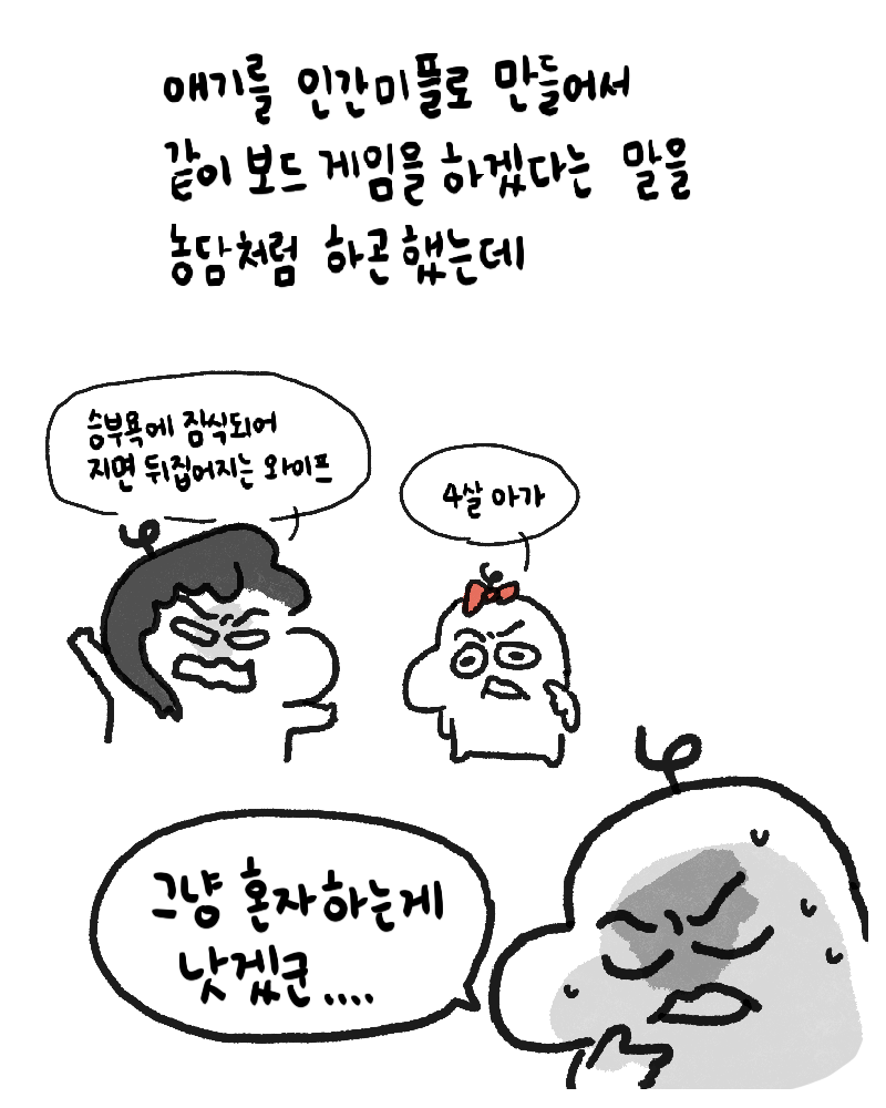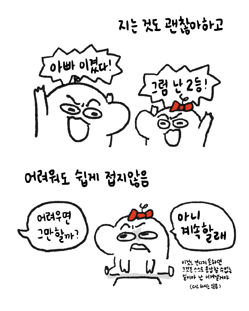 게임을 할 줄 아는 것보다 더 좋은 건, 게임에서 졌다고 성질부리지 않으며 재밌어하고 끈기 있게 규칙 지켜가면서 게임을 하려고 하는 것?